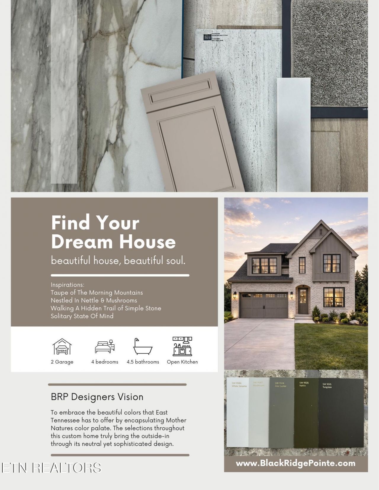 Black Ridge Pointe - Where Convenience Meets LuxuryDiscover Black Ridge Pointe, ideally located in Knox County with all the conveniences of Farragut just minutes away. Enjoy quick access to Turkey Creek and the Interstate--about 1.5 miles from your door--and the added benefit of no HOA.This new construction 'NICHOLE' plan offers 2,949 square feet of distinctive design and exceptional flow. The main level features two bedrooms and two and a half bathrooms, including a spacious primary suite, all enhanced by ten-foot ceilings and eight-foot doors that create a grand yet comfortable atmosphere. Upstairs, two additional bedrooms, two full bathrooms, and a generous bonus room provide flexibility for family, guests, or recreation. The nine-foot ceilings throughout the second floor make every room feel spacious and inviting.Elegant architectural touches include a graceful, curved balcony and Pella aluminum-clad windows that bring in natural light while showcasing your custom finishes. The exterior of the home is scheduled to receive your masonry selection, providing a low maintenance veneer, while a covered rear patio accessed through a twelve-foot sliding glass door extends your living space outdoors.Framing is already complete, giving this home a head start. Finalize your custom selections now and move in within approximately six months.Experience the perfect balance of luxury, location, and freedom at Black Ridge Pointe. Schedule your private appointment today to see where your dream home can become reality.