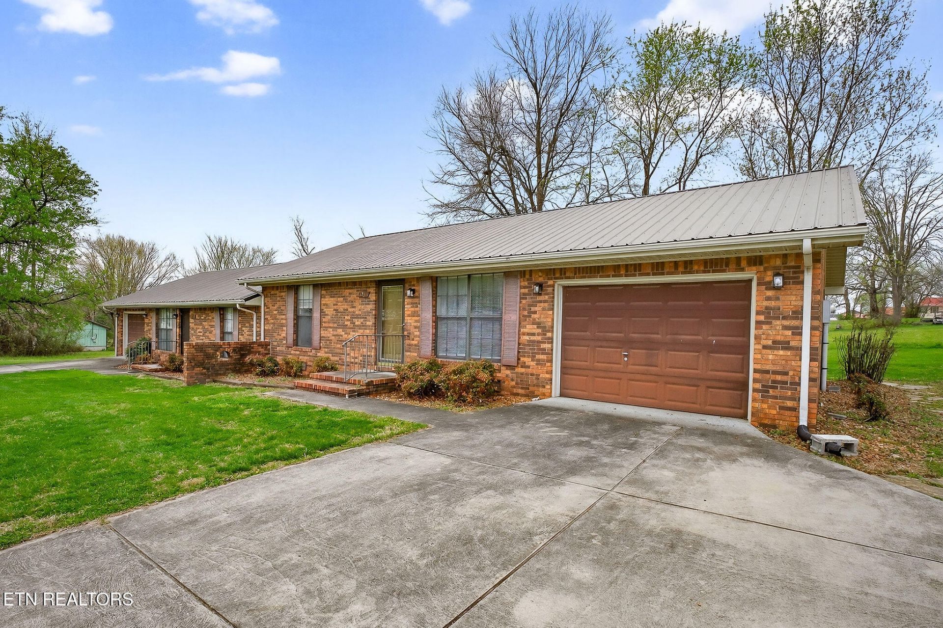 Turnkey duplex offering a strong opportunity for both investors and owner-occupants. Each side features 2 bedrooms, 1.5 baths, and 1,039 square feet with a functional, easy-flow layout. The main level welcomes you into a comfortable living room with a convenient coat closet, opening into the kitchen for everyday ease. A laundry room and half bath are tucked just off the kitchen, while both bedrooms and a full bath are situated together for privacy. Generous closet space throughout adds to the home's practicality. Each unit includes a 1-car garage, brick exterior, and durable metal roof for low-maintenance living. Built in 1995, this property offers solid construction and long-term potential in a desirable setting.