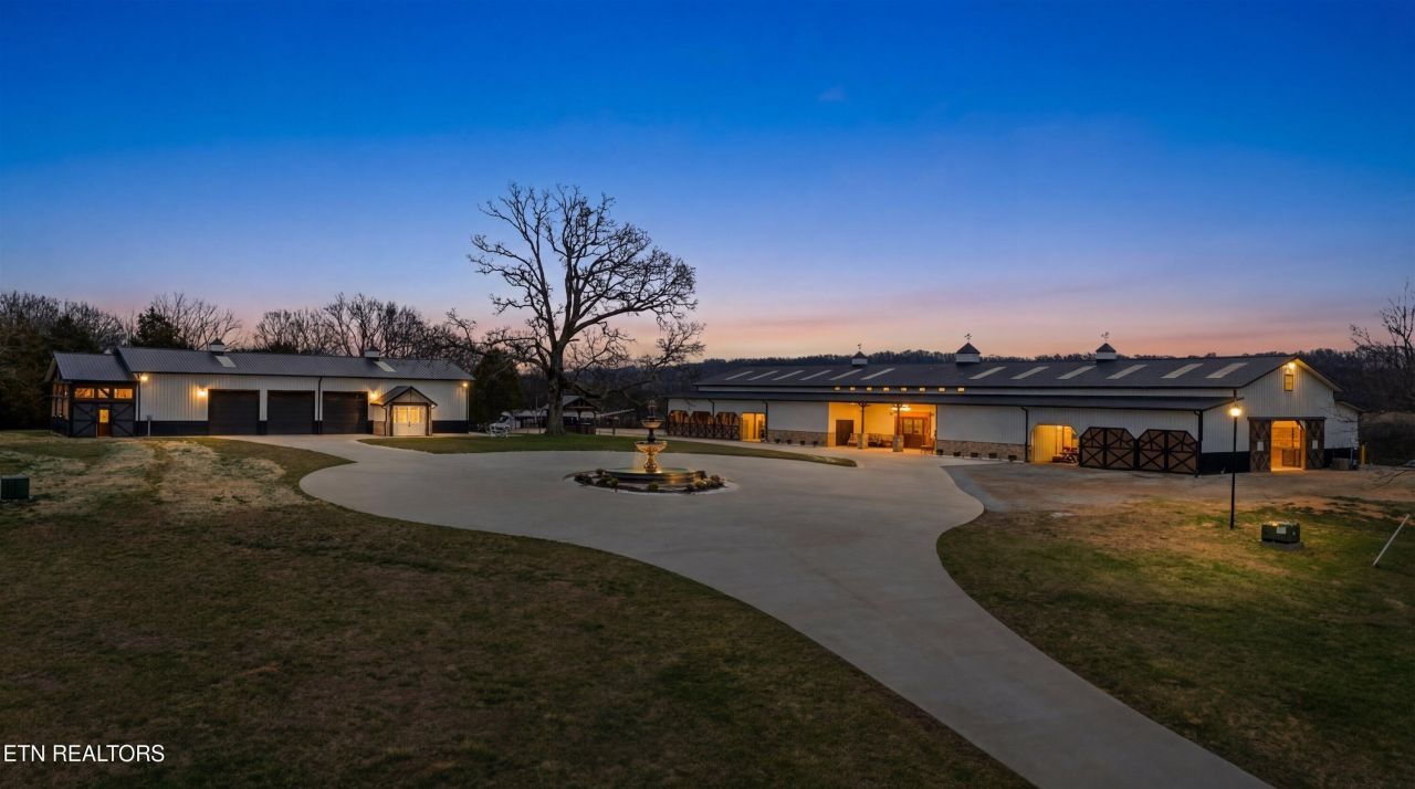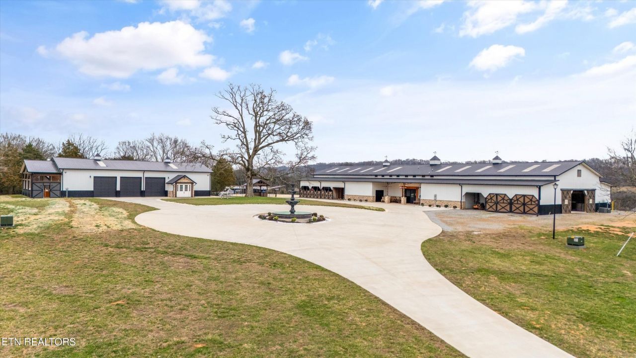 Rare opportunity in East Tennessee to experience the perfect blend of luxury equestrian living and event-ready versatility with this remarkable 168' x 64' horse barn totaling 10,752 sqft horse and an 84' x 52' event barn totaling 4,368 sqft set on 20 acres. Designed with both horse enthusiasts and entrepreneurs in mind, this exceptional property offers premium facilities and incredible income potential.The impressive barn features 20 spacious indoor stalls and 15 outdoor stalls, providing ample accommodations for a thriving boarding, training, or breeding operation. The thoughtfully designed layout includes areas for tack, feed storage, equipment, and a large open space that can easily host weddings, private events, clinics, and gatherings.Above the barn, a beautifully designed 1,400 sq ft living area offering large open concept kitchen, living room & dining room setting, 3 sleep rooms with 4 full attached bathrooms, and balconies that overlook the interior of each side of the horse barn. This offers comfortable owner or guest accommodations with elevated views of the surrounding countryside. The lower level includes separate 720 sqft living quarters for barn staff or caretakers, allowing for convenient on-site management of the property.Surrounded by 20 scenic acres of usable land, there is abundant room for pastures, paddocks, riding arenas, or future equestrian improvements. Whether you're seeking to establish a luxury horse facility, premier event venue, or private equestrian estate, this one-of-a-kind property offers the space, flexibility, and charm to bring your vision to life. Take virtual tour of the property by viewing the amazing photos and video of the property. Schedule your private showing today.