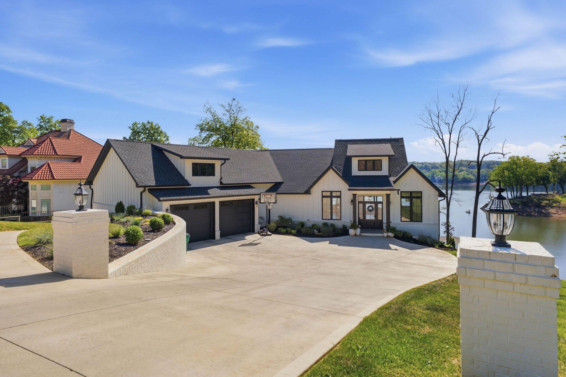 Tucked inside the gated community of Windswept on Cherokee Lake, this lakefront home delivers the kind of setting people come here for with the wide water views, mountain backdrops, and even the occasional eagle overhead. Residents enjoy access to a private marina, manor house, sport courts, and sidewalks that wind throughout the neighborhood.The home is designed for easy main-level living. The primary suite offers a vaulted ceiling, an oversized walk-in closet, and a spacious en suite bath with double vanities and a walk-in shower. Sliding doors open straight to the deck, making it easy to take in the view morning or evening. A dedicated office is also located on the main level, along with a convenient half bath for guests and a large 2-car garage.The vaulted great room is a true focal point of the home, anchored by custom-built shelving for TV and display, a fireplace, and thoughtfully placed lighting that highlights art and architectural detail. Double sliders open to the deck, creating a seamless indoor-outdoor flow while framing the lake and mountain views. The chef's kitchen is set up for gathering, complete with premium appliances, a large, expansive island, a huge walk-in pantry, and a designated coffee bar.Downstairs, you'll find two additional bedrooms, each with their own full bath, along with a spacious den, a separate laundry room, and an additional half bath for convenience. The lower level also includes a 1,158 sq ft garage with plenty of room for lake toys, equipment, or extra storage. With its layout, the lower level could easily function as an in-law suite or private guest space.Just steps away, you'll find lake access, making it easy to enjoy boating, kayaking, or time right at the water's edge.