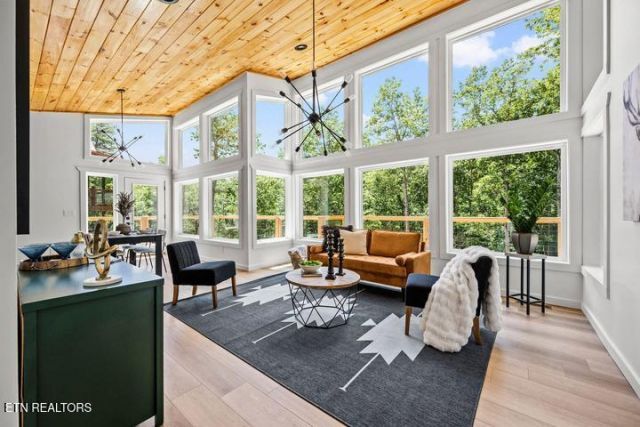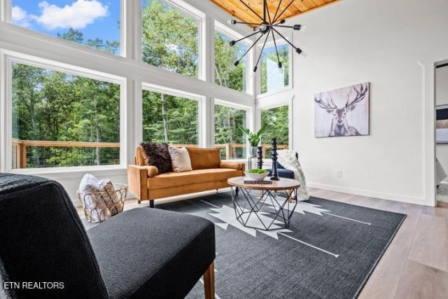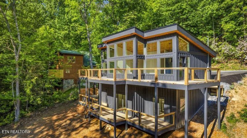Stunning Modern Retreat in Sky HarborWelcome to this breathtaking new construction cabin in the highly sought-after Sky Harbor community, perfectly located between Pigeon Forge and Gatlinburg. This beautifully designed 3-bedroom, 3.5-bathroom modern retreat offers the ideal combination of luxury, comfort, and investment potential.Step inside and you'll immediately notice the abundance of natural light pouring in through the expansive wall of windows that spans the main level. The open-concept design seamlessly connects the living room, dining area, and spacious kitchen, creating a bright and inviting space perfect for entertaining. The kitchen offers generous workspace, ample storage, and modern finishes, while a convenient powder room is also located on the main floor.The living area opens to a large wraparound deck, where you can relax and enjoy peaceful wooded views -- the perfect setting for morning coffee or evening gatherings.The primary suite on the main level is a true private retreat, featuring floor-to-ceiling windows, a luxurious en-suite bath with dual vanities and a spacious walk-in shower.Downstairs, the entertainment level is designed for fun and relaxation. A large recreation room provides the perfect space for games, movies, or gatherings with family and friends. Two additional bedrooms, each with their own en-suite bathrooms, offer comfort and privacy for guests.Step outside to the lower deck featuring a hot tub, overlooking a gently sloping yard that provides rare outdoor usable space for activities or relaxing in nature.Additional highlights include: Parking for 4+ vehicles Low HOA fees Prime location close to area attractions, dining, and entertainmentWhether you're searching for a luxury vacation home, a high-performing short-term rental, or a peaceful mountain retreat, this exceptional property delivers on style, location, and functionality.Schedule your showing today and experience this incredible mountain escape for yourself.Property is currently staged.