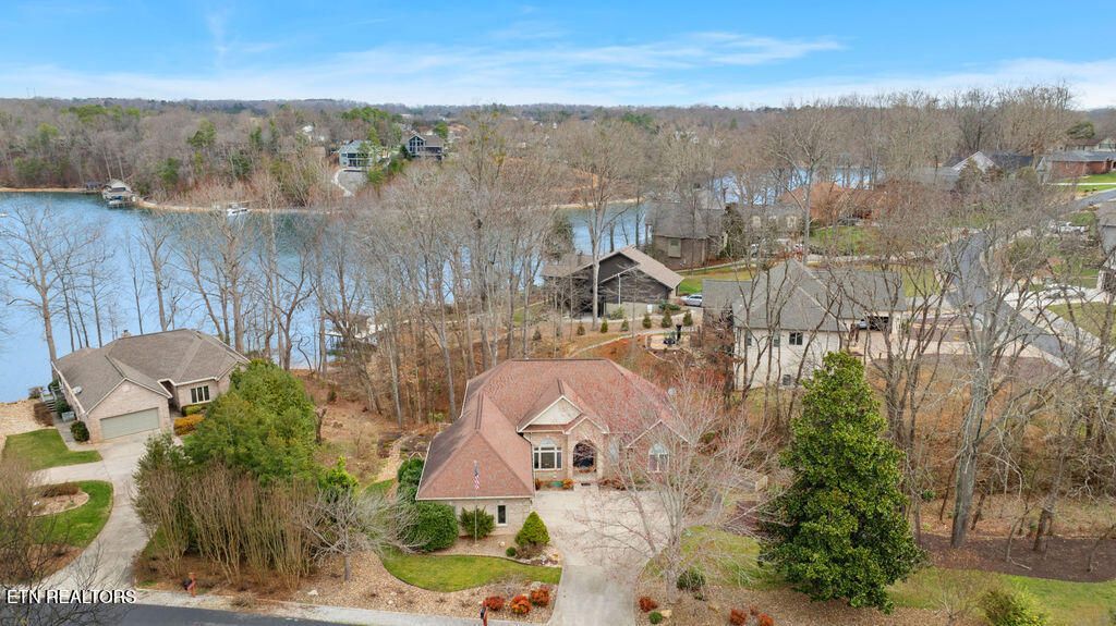 GORGEOUS fully renovated home in Tellico Village with timeless design and exceptional attention to detail. Perfectly positioned on an oversized water-access lot, this stunning property blends elevated style with comfortable everyday living.The spacious kitchen is designed to impress with leathered quartz countertops, new custom cabinetry with soft-close doors and drawers, abundant counter space, and a bright eat-in area. A striking double-sided fireplace connects the kitchen and living room, where vaulted ceilings, a wall of windows, and sliding glass doors fill the space with natural light and offer a seasonal lake view. The entire main level features new seamless flooring, creating a clean and cohesive feel throughout.The primary suite is a serene retreat with a custom feature wall, another beautiful seasonal lake view, and a completely updated spa-inspired bath featuring a soaking tub, walk-in shower, custom vanities, designer wall treatments, and direct access to a spacious walk-in closet. A dedicated home office on the main level showcases built-ins and a stunning vaulted custom wood ceiling, creating an inspiring workspace.The walk-out lower level is truly special -- a color-drenched masterpiece designed for both entertaining and relaxation. This level includes two spacious bedrooms, a luxurious full bath, abundant storage, and multiple flexible living spaces to fit any lifestyle. The moody speakeasy-style wet bar adds character and warmth, creating the perfect spot to gather with friends. The space flows effortlessly into a comfortable media room, ideal for movie nights, game days, or cozy evenings at home.Sliding glass doors open to a large fenced patio, where you can unwind in privacy, enjoy the sounds of nature, and catch glimpses of the lake.Unpretentious, welcoming, and designed to the nines, this Tellico Village home is a first-class stunner that must be seen to be fully appreciated.