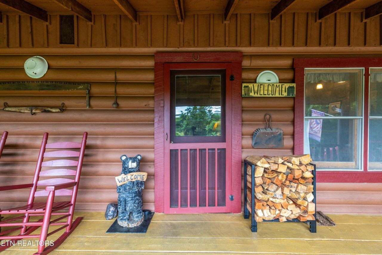 Stunning 2BR/2BA True Log Cabin with Mountain Views + Bonus Room!Beautifully maintained true log cabin with vaulted ceilings, newer hardwood floors, granite countertops, and tasteful vintage-style decor. Features 2 bedrooms, 2 baths, plus a bonus room/office, sleeps 8 comfortably. The spacious interior includes a large game room with pool table and a gorgeous stone woodburning fireplace, perfect for cozy mountain evenings. Fully furnished and well-appointed-ideal as a short-term rental, second home, or permanent residence.Enjoy the outdoors with a screened-in back porch, large front porch with stunning mountain views, patio area, propane firepit, and flat yard. Additional highlights include a paved driveway, large storage shed with riding lawn mower, and metal roof with new gutters. Located in a gated/guarded community offering a pool, disc golf, walking trails, pickleball/tennis court, dog park, and a community pavilion with picnic area. Peaceful setting with abundant wildlife to watch and enjoy!