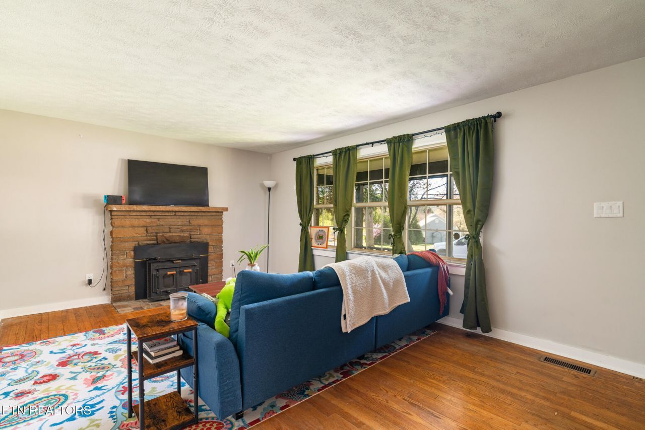 North Knox Charmer-Located in the heart of Fountain City, this 4 bedroom one level home is ideal for the growing family. Beautiful hardwood flooring throughout add to the character of this 1950s home. Dining room with built in corner cabinets, living room with stone fireplace/woodburning stove, Kitchen with smooth top range, dishwasher, new microwave. Ceiling fans and lights have all been updated as well as a new shower and glass door in back bathroom and new vanities in both. Large 4th bedroom has cathedral ceiling with exposed wood beams and could be great flex space for a den/family room with access to large deck area. Nice level lot and established neighborhood conveniently located to shopping, restaurants, banking and more. Easy access to downtown and UT campus so perfect rental for the college kids! **Drone photography used so any boundary lines are approximate and should be verified**