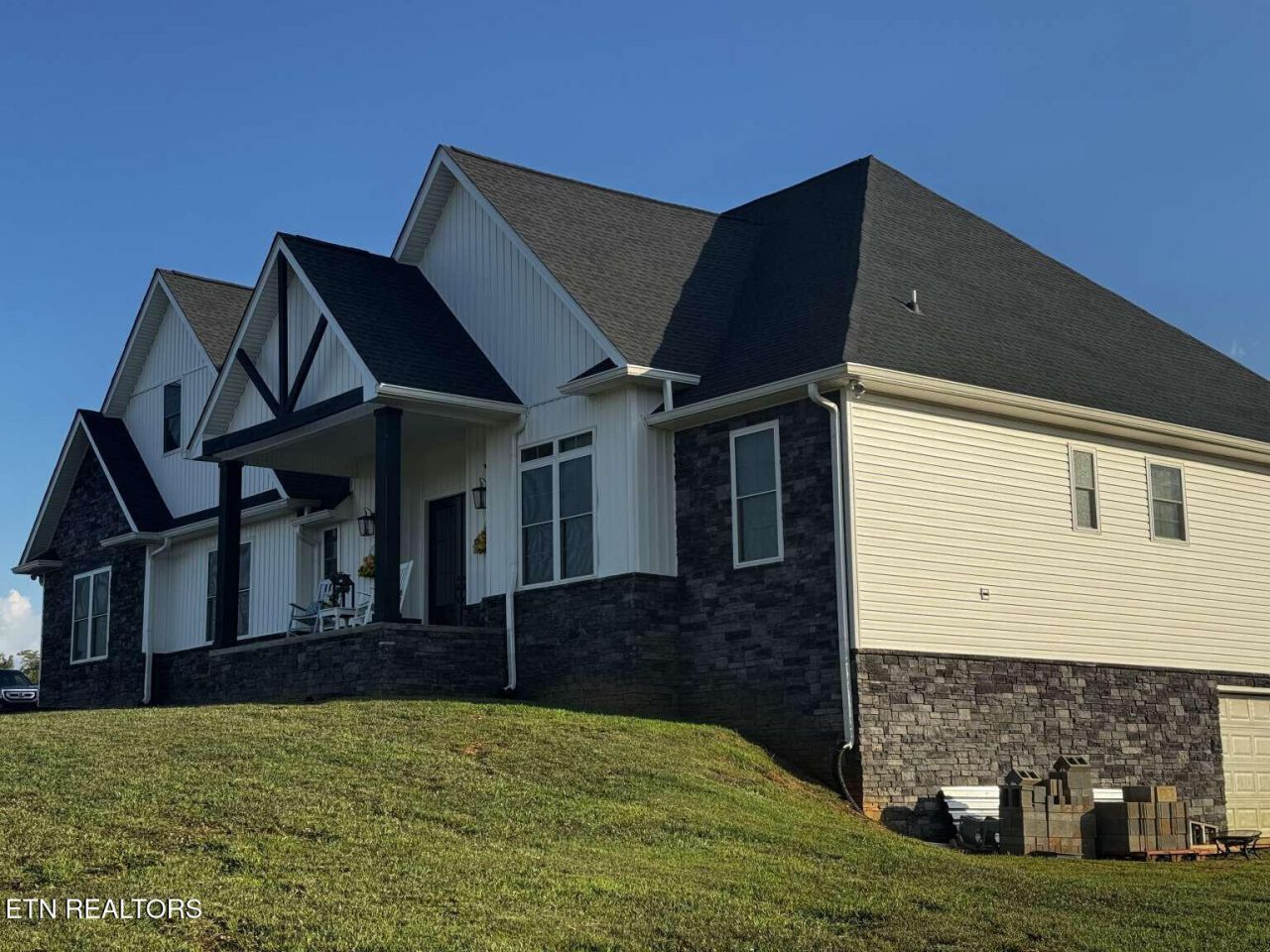 Beautiful modern home on 8.6 acres of flat to gently rolling land. Main level offers 3,058 sq ft of living space with an expansive open floor plan and 2,700 sq ft of unfinished basement space. Grand living room with cathedral ceiling flows into a spacious kitchen with large island, abundant cabinetry, and walk-in pantry. Primary suite features dual walk-in closets and a luxurious bath with whirlpool tub and tiled walk-in shower. Additional highlights include an office, oversized laundry room, 4.5 bathrooms (including an exterior pool bath), and a 3-car carport. Ideal location with quick access to I-81 and an easy drive to Sevierville, Knoxville, and Bristol. Room to grow, work, and enjoy scenic views. Buyer representation welcome.