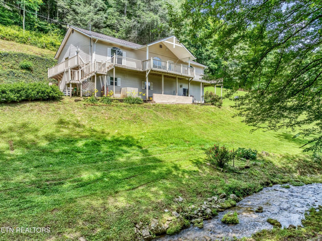 Properties in this setting are rarely offered --don't miss this chance!Tucked away on 5 private acres in beautiful Townsend, this spacious 3 bedroom, 3 bath home offers the perfect blend of comfort, flexibility, and peaceful mountain living. Surrounded by mature trees, an all weather creek and abundant wildlife, you'll enjoy the privacy and serenity that make this area so desirable. The thoughtfully designed layout provides ample living space, with a second level that could easily be converted into separate living quarters--ideal for extended family, guests, rental potential, or multi-generational living. A dedicated game room adds even more versatility for entertaining and relaxation.Whether you're looking for a full-time residence, weekend retreat, or investment opportunity, this property delivers room to roam, space to grow, and the quiet charm of East Tennessee living--all just minutes from the conveniences of Townsend.Buyer and or Buyers Agent to verify all information.