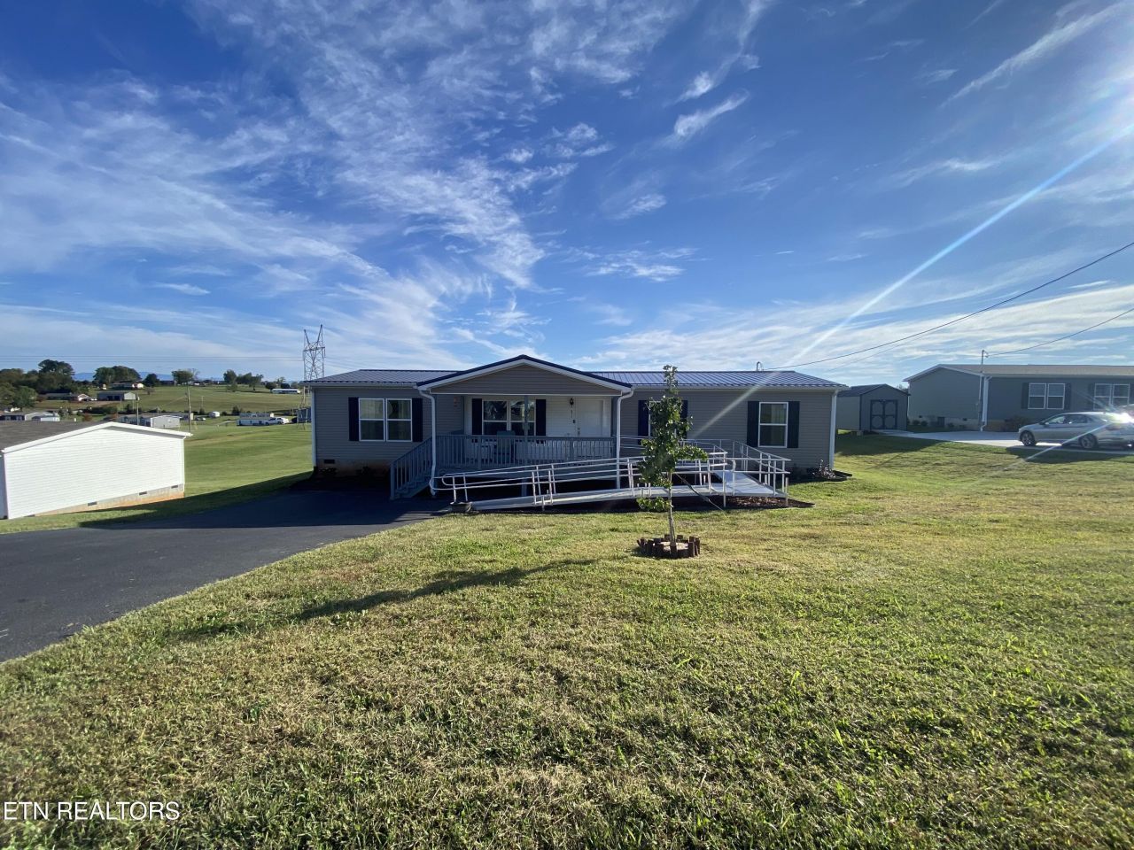 Welcome to your beautiful Tennessee home! This beautifully designed home features 3 generous bedrooms, 2 full baths, and a versatile den-perfect as a playroom, home office, or cozy retreat.The open-concept kitchen, dining, and living area is ideal for entertaining, complete with a large eat-in island and abundant storage. Whether you're hosting friends or enjoying a quiet night in, this space adapts to your lifestyle with ease.Your private master suite offers a spa-like escape with dual vanities, a step in shower, and a spacious walk-in closet. Step outside to enjoy both a covered front porch with a custom handicap accessible ramp (can be removed if not needed) and an expansive rear deck with remarkable views of English Mountain-perfect for morning coffee or evening gatherings.The metal roof on the home and shed is only a few months old.Located just minutes from Sevierville shopping, historic Dandridge, and PUBLIC LAKE ACCESS, this dream home blends convenience with scenic charm.