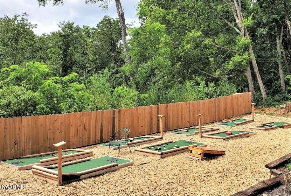 Charming, cozy cabin tucked away with a secluded feel with easy access to shopping, restaurants and attractions in the Pigeon Forge and Sevierville areas and a short drive to Gatlinburg and the Smoky Mountains! This one bedroom, two full baths and two bonus rooms can comfortably accommodate up to 7 guests and has many wonderful amenities that make this a fantastic getaway for everyone! Very spacious living room, dining room and kitchen with plenty of room to prepare meals to be enjoyed on the large, covered deck with table and 4 chairs, a cushioned outdoor love seat and chairs, TV, and an outdoor gas grill. The deck leads to the side yard that is loaded with activities for the entire family. There is a large custom built 8-hole putt-putt course, custom built corn hole boards, and an outdoor firepit. The front entry deck features a six-person hot tub, game table, and a lounge area with four rockers, along with a small metal table with 2 chairs and a tv for your enjoyment while relaxing! There is margarita bar with a wet sink and ice maker in the living room! The ensuite is very spacious with a beautiful step-in tile shower. One of the bonus rooms has a three-level bunk and wall TV for the kids to enjoy. When the cabin was purchased in 2022, a major renovation began which included: new metal roof, paint inside and exterior, new flooring throughout, pine ceilings, tile bathrooms/showers, granite countertops, kitchen appliances, most new furniture, mattresses, TV's, hot tub, replaced the covered back deck, installed fencing and retaining walls, updated septic system, added vapor barrier to crawlspace and more! Extensive excavation for driveway retaining wall repair and installation to clear debris and grounds all around the home and landscaping. There are two 300 gallon holding tanks, and a water filtration system that belongs to the owner. Contents in crawlspace and shed do not convey with the property. The owner frequently uses the cabin for themselves and family members. https://www.firesidechalets.com/cabins/640(